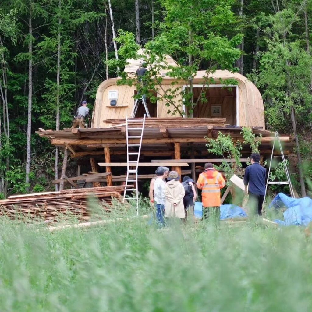 “CORONTE”は、これまで持続可能な林業、丸太の水中乾燥、製材、自然建築をやりながら考えてきたことを、つめこんだ作品です。コテージの横の森の中も少しずつ整えています。森を再生しながら、森を楽しめる場をつくる。